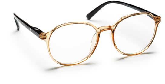 Haga Optik läsglasögon Nora i en trendig modell med transparent front och havana-färgade skalmar för perfekt seende på nära håll. Läsglasögonen har en tunn asfärisk lins för naturlig återgivning vid rätt anpassad styrka. Metalldelarna är antinickel-behandlade.