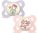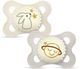 MAM Original Night med självlysande knopp gör nappen enkel att hitta i mörker. Nappen av klassisk modell är skonsam för huden tack vare stora lufthål och knottrig insida. Sugdelen är i silkeslen silikon, MAM SkinSoft, som känns mjuk och välbekant, precis som mammas hud. MAM Original Night ligger i en praktisk förvaring- och steriliseringsbox som gör det enkelt att sterilisera napparna i mikron.