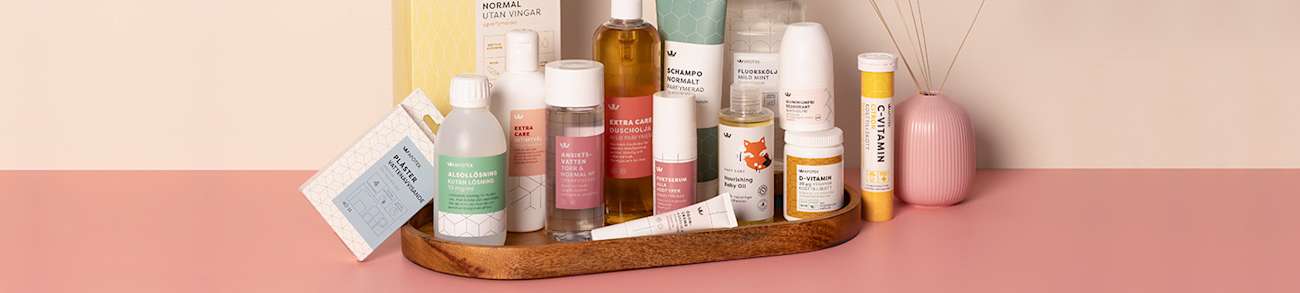 De senaste åren har vi lanserat flera spännande hudvårdsserier som du bara hittar hos Kronans Apotek. Vi har bland annat tillsammans med Charlotte Kalla tagit fram hudvårdsserien KALLA för både ansikte och kropp, med hållbarhet och nordiska ingredienser i fokus samt Hair + Scalp, en hårvårdsserie helt utan sulfater. Vi har också flera olika serier för allt från ung problemhy till mogen hy.