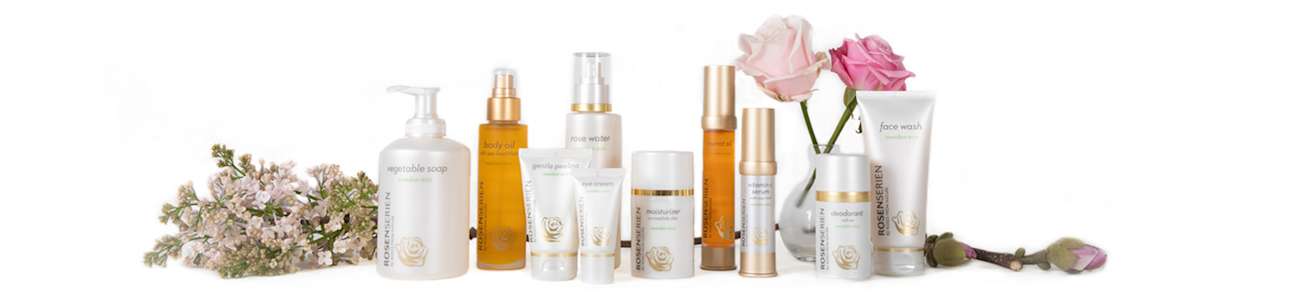 Hela serien består av noga utvalda ingredienser som är snälla mot huden och tillverkningen av produkterna sker i Sverige. Här hittar du bland annat produkter som Rosenserien Cleansing Cream, Deodorant Roll-on Rose och Rosenserien Rose Cream Antiwrinkle.