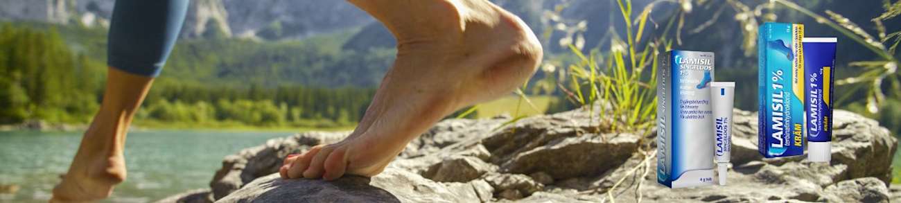 Lamisil Dermgel, kräm och Singeldos är receptfria läkemedel mot fotsvamp. Vanliga symtom är klåda, sveda och sprickor mellan tårna.
