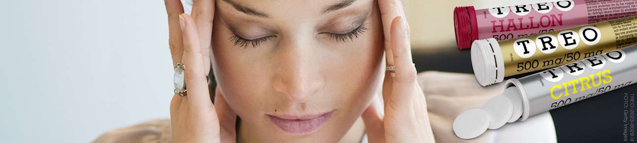 Detta kan t.ex. vara huvudvärk, inklusive migränhuvudvärk, tandvärk, muskel- och ledvärk, menstruationssmärtor samt vid feber vid förkylningssjukdomar. TREO är ett väletablerat varumärke som har funnits på marknaden sedan 1962. TREO (acetylsalicylsyra 500 mg/koffein 50 mg) är en receptfri brustablett som innehåller kombinationen acetylsalicylsyra och koffein. Treo finns i tre smaker: Original, Hallon och Citrus. Hur fungerar Treo? Acetylsalicylsyran lindrar smärta genom att motverka bildningen av speciella ämnen, prostaglandiner vilka är delaktiga i olika inflammationsprocesser i kroppen. Hämningen har därför en antiinflammatorisk effekt. Den febernedsättande effekten beror på att acetylsalicylsyra ökar kroppens värmeavgivning. Koffeinet förstärker den smärtstillande effekten av acetylsalicylsyra. Koffein har även en smärtstillande effekt genom sin sammandragande verkan på utvidgade blodkärl i hjärnan t.ex. vid migrän. Koffein har även en uppiggande verkan. Treo ger med vatten en klar lösning som är skonsammare mot magen än vanliga fasta tabletter med acetylsalicylsyra. Treo börjar verka inom 30 minuter. Effekten är som störst efter 1-2 timmar.