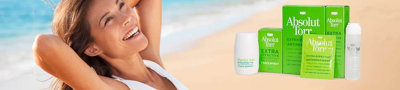 Produkten kommer i form av medel, roll-on och wipes och kan ha effekt i upp till 7 dagar. Produkten tas innan man går och lägger sig så den får verka under natten. Det kan hända att Absolut Torr svider lite, vilket inte är farligt. Om huden är helt torr vid appliceringen så minskar du risken för sveda och hudirritation. Absolut torr är fri från parfym och konserveringsmedel.