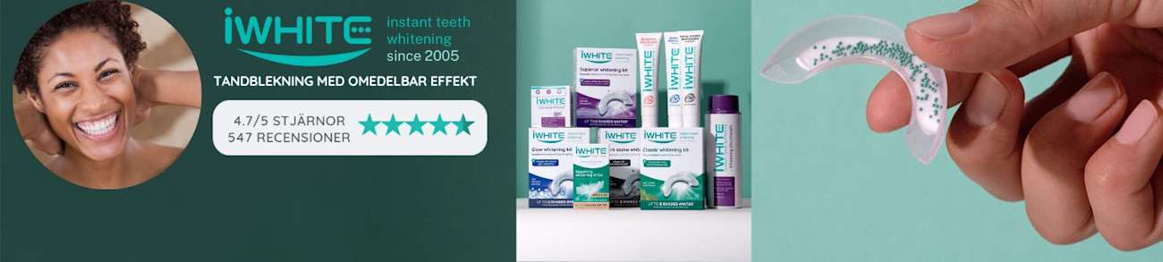 iWhite är en serie produkter för vitare tänder. Du kan använda dem var för sig eller kombinera med varandra. I sortimentet finns förfyllda skenor för vitare tänder, tandkräm, munskölj och tandtråd.