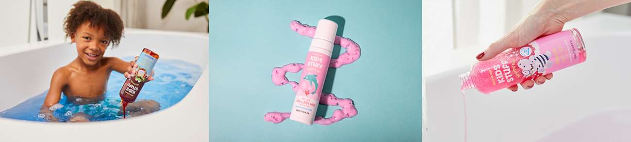Med produkter som formbart skum och bubbelbad som ändrar färg eller glittrar har badandet blivit en kreativ och lekfull stund för barn från 2 år och uppåt och deras föräldrar. Kids stuffs produkter har utvecklats med en försäkran om att de lämnar barnen rena samtidigt som de är tillförlitliga och milda för barn i ung ålder. Alla produkter är producerade i England och innehåller utvalda ingredienser för barnens känsliga hud.