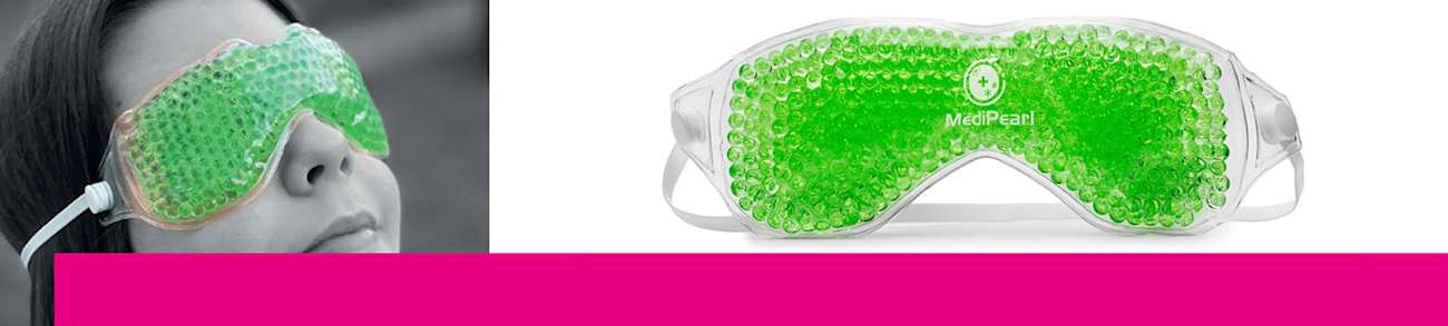 MediPearl ögonmask är en medicinteknisk produkt som innehåller "pärlor" innehållande vatten, glycerol och natriumpolyakrylat (superabsorberare). De mjuka pärlorna har förmåga att absorbera och avge värme eller kyla. Du kyler enkelt masken i frys eller värmer den i mikrovågsugn, läs noga instruktionerna innan du startar micron. Vid användning formar sig pärlorna i masken efter ditt ansikte för optimal komfort och lindring. Masken rengörs enkelt med tvål och vatten och kan användas om och om igen.