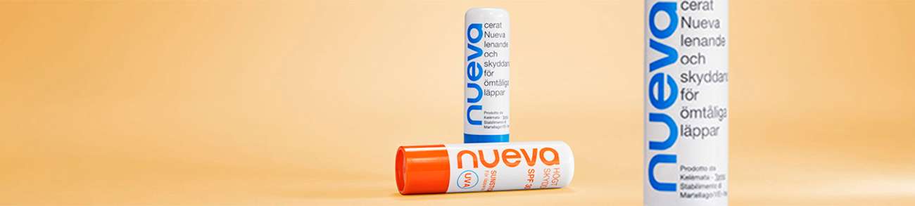 Nueva läppcerat är skyddande läppcerat som vårdar dina läppar och förhindrar uttorkning. Deras läppcerat finns även med solskyddsfaktor 30.