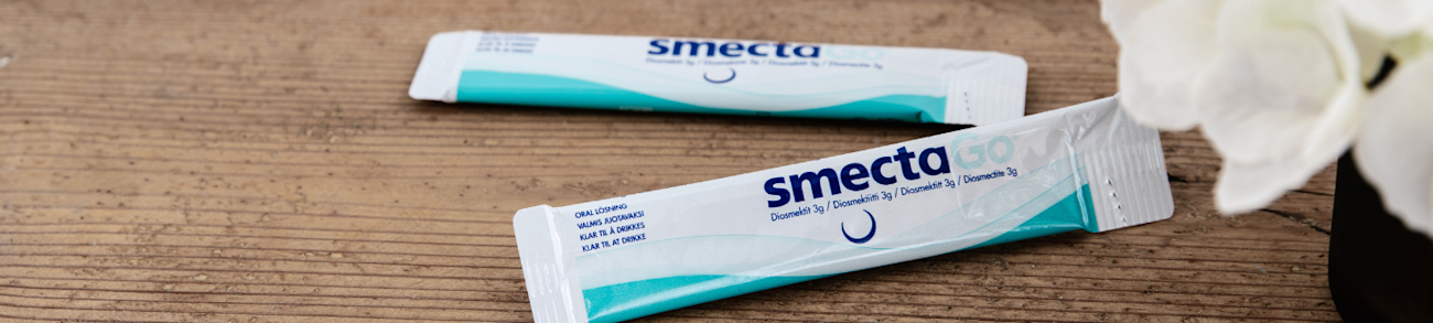 SmectaGo® stoppar och behandlar diarré. Ett milt och naturligt behandlingsalternativ för både akuta och kroniska besvär.