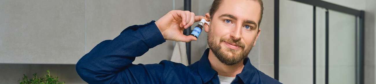 Waxonova Wax Removal, en 100% naturlig, effektiv, lättanvänd öronspray som förebygger och behandlar problem med öronvax, vaxproppar och klåda orsakad av torr hud i hörselgången.