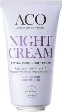 Nattkräm med vitamin C för mogen hud. Reducerar rynkor & återfuktar i 24h. Förbättrar hudens elasticitet medan du sover samt stärker hudbarriären. Oparfymerad.