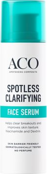 ACO Spotless Clarifying Face Serum är ett snabbabsorberande serum som reducerar orenheter och lugnar huden. Minskar irritation och rodnad. Applicera morgon och kväll. Utan parfym.