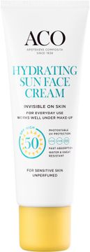Återfuktande solkräm för ansiktet med SPF 50 och bredspektrum UVA/UVB-skydd. Formuleringen smälter in i huden och ger en osynlig finish på alla hudtoner. Innehåller antioxidanter (vitamin C & E) och niacinamid för att jämna ut hudtonen och stärka hudbarriären. Boostar hudens naturliga produktion av ceramider för att hålla huden återfuktad hela dagen. Lätt formulering, absorberas snabbt och lämnar inte en fet hinna på huden. Icke-komodogen. Vatten och svettresistent. Passar känslig hud. Dermatologiskt tetsad. Oparfymerad.