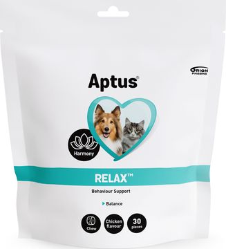 Aptus Relax kan bidra till ett lugnt och balanserat beteende om din hund eller katt är orolig eller stressad.