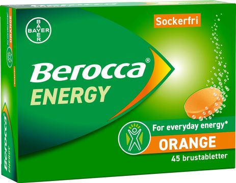 Berocca® Energy Orange är en sockerfri multivitamin med apelsinsmak.- Innehåller bl.a. vitamin B2, B12, C och magnesium vilka bidrar till minskad trötthet och utmattning samt vitamin B5 som bidrar till normal mental prestationsförmåga.- Brustabletterna innehåller en skräddarsydd blandning av 11 viktiga vitaminer och mineraler. - Berocca® är Sveriges mest sålda multivitamin.* - Lämplig att ta varje dag året om som en del av en hälsosam rutin. - Energi för kropp och sinne. Så att du orkar med dagens alla utmaningar och aktiviteter 365 dagar om året.- Berocca® Energy Orange är både glutenfri och vegansk. * Berocca® No.1 Multivitamin, Sverige, DVH & Apotek, IQVIA & Nielsen, försäljningsvärde multivitamin, FY 2024.Berocca® Energy: Vitamin B2, B3, B5, B6, B9, B12, C och magnesium bidrar till minskad trötthet och utmattning, Vitamin B1, B3, B6, B7, B9, B12, C och magnesium som bidrar till normal psykologisk funktion.Berocca® är ett kosttillskott. Kosttillskott ersätter inte en varierad kost eller hälsosam livsstil.