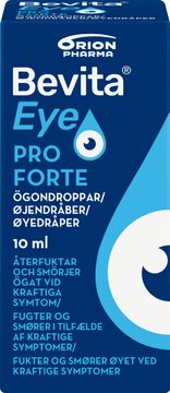 Bevita Eye Pro Forte ögondroppar är återfuktande och smörjande ögondroppar till behandling av måttlig till svår ögontorrhet. - Återfuktande och smörjande ögondroppar. - Patenterad sammansättning. - Fri från konserveringsmedel och fosfat. - Kan användas med mjuka kontaktlinser. - Långtidsverkande:>12 timmar. Bevita® Eye Pro Forte ögondroppar smörjer och skyddar ögats yta och ger långvarig lindring av symtom vid torra ögon. Ögondropparna innehåller TS-polysackarid och stormolekylär hyaluronsyra som tillverkats på bioteknologisk väg. Hyaluronsyra är ett ämne som förekommer naturligt i kroppen. På grund av hyaluronsyrans viskositet är dropparna optimalt smörjande och återfuktande, och har i tillägg en stabiliserande effekt på ögats tårfilm. TS-polysackarid är ett naturligt ämne som utvinns ur fröna till växten Tamarindus indicas . Detta ämne skyddar ytan av ögats horn- och bindhinnor. TS-polysackariden bildar en skyddande hinna på ögats yta som hjälper till att återställa ögats tårfilm och ytans normala fysiologiska balans. Kombinationen av dessa två ämnen har en synergistisk effekt på ögats horn- och bindhinnor, och ger långvarig lindring och skydd mot irritation orsakad av yttre faktorer (vind, sol, rök, torr luft), ansträngning av ögonen (kraftigt ljus, långvarig användning av datorer) eller mekaniska faktorer (användning av kontaktlinser, eller efter ögonoperation). Koncentrationen av de olika ämnena i lösningen har valts så att dropparna förmår smörja ögonen också i samband med mycket kraftiga obehagssymtom.