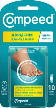 COMPEED® Liktornsplåster Medium fungerar som en andra hud, lindrar smärtan omedelbart och bidrar till att liktornen snabbt kan avlägsnas. Plåstret skyddar mot friktion och tryck samt återfuktar och mjuka upp liktornar, för att lättare avlägsna dem. Sitter på plats i över 24 timmar, skiljer sig dock från person till person. Omedelbar smärtlindring - Skyddar mot friktion och tryck