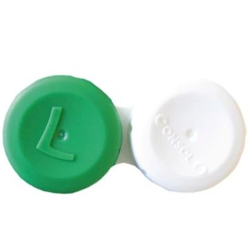 Linsetui för förvaring av kontaktlinser. Uppmärkt med höger och vänster för enkel förvaring.