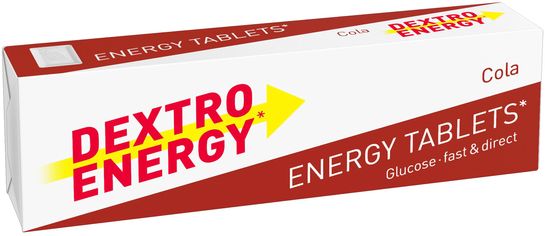 Dextro Energy hjälper dig att stabilisera din blodsockernivå när ditt blodsocker är lågt. Den innehåller 88 % dextros, ett socker som är identiskt med kroppens eget blodsocker. Sockret går direkt ut i blodet och börjar verka redan inom ett par minuter. Med smak av Cola.