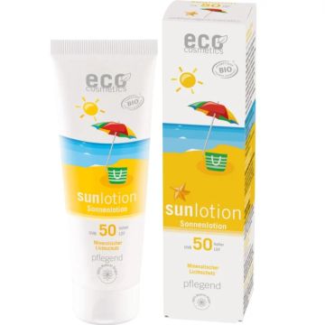 ECO sollotion SPF 50 återfuktar, vårdar och skyddar huden effektivt mot skadliga UVA- och UVB-strålar. Den vårdande krämen är lätt att applicera och gör att huden känns mjuk. Lämplig för kropp och ansikte. Det fysikaliska UV-filtret skyddar omedelbart efter applicering. Ekologisk olivolja och ekologisk havtornsolja återfuktar och ger näring till huden. Växtbaserat E-vitamin skyddar mot yttre miljöpåverkan tack vare dess antioxidativa egenskaper. Med doft av en frisk sommarbris från eteriska oljor. Utan alkohol. Certifierad ekologisk och vegansk. Vattenfast