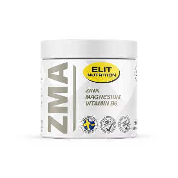 ZMA från Elit Nutrition, ett kosttillskott med zink, magnesium och vitamin B6. ZMA är ett av de mest populära kosttillskotten och Elit Nutrition ger en väl doserad ZMA som täcker dina behov.Med magnesium som bidrar till normal proteinsyntesMed zink som samt bidrar till bibehållandet av normala testosteronnivåer i blodet.En månadsförbrukningFri från onödig utfyllnad ZMA från Elit Nutrition levereras i en precis koncentration av kombinationen zink, magnesium och vitamin B6. Detta kosttillskott är erkänt och omtyckt av många människor runt om i världen. ZMA används för många olika syften.ZMA från Elit Nutrition ger hela 450 mg magnesiumcitrat vilket utgör 120 % av DRI. Magnesium är ett mineral som används i ett stort antal biokemiska processer i kroppen. Att inta magnesium bidrar bland annat till elektrolytbalansen, normal funktion av nervsystemet och normal proteinsyntes.Elit nutrition har även tillsatt hela 30 mg zink till sin ZMA. Zink är ett mångfacetterat mineral som delar en egenskap med magnesium. Det används till väldigt mycket i kroppen. Zink bidrar bland annat till en normal syra- / basbalans, normal kolhydratsmetabolism, normal proteinsyntes, samt bibehållandet av normala testosteronnivåer i blodet.Detta avrundas med det erkända ämnet vitamin B6 för att ge en komplett och avrundad ZMA. Innehåller sötningsmedel
