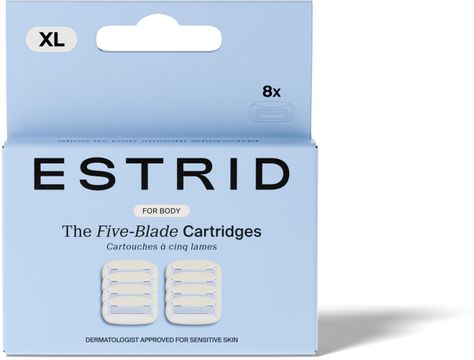 Estrids rakblad är framtagna speciellt för känslig hud. De fem supervassa rakbladen garanterar en bekväm och nära rakning varje gång. Rakbladen omges av vår veganska remsa som ger återfuktning med sheasmör och aloe för att skydda huden, förhindra irritation och ge ett smidigt glid. Våra rakblad passar alla Estrid-handtag.