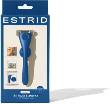 129 krI apotek: 129 krUpptäck Estrids prisvinnande rakhyvel, nu framtagen speciellt för ansiktsbehåring. Rakhyveln är dermatologiskt godkänd för känslig hud med sina fem vassa, tunna diamantbelagda blad i stål som ger en nära och smidig rakupplevelse varje gång. Rakbladen omges av vår veganska återfuktande remsa med E-vitamin för att skydda huden, förhindra irritation och ge ett mjukt glid. Varje Starter Kit innehåller ett ergonomiskt designat handtag av stål med ett silikongrepp, så att det ligger säkert i handen. Till rakhyveln medföljer även en matchande vägghållare, så att du alltid kan ha den nära till hands.– Starter Kit innehåller: 2 fembladiga rakblad för ansiktet, ett handtag i stål och en matchande vägghållare – Särskilt designad för ansiktsbehåring – Dermatologiskt godkänd för känslig hy – Fem diamantbelagda blad för hållbarhet och en nära rakning – Vegansk återfuktande remsa med E-vitamin – Precisionstrimmer för att forma och nå svårnådda områden – Komfortskydd för nära rakning – Ergonomiskt handtag i stål för ett bra grepp – Matchande vägghållare i stål – Designad i Sverige, tillverkad i Tyskland
