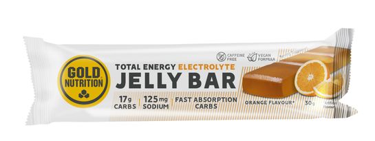 Apelsinenergi med extra elektrolyter! Jelly Bar Elektrolyt–Apelsin ger 17 g kolhydrater (glukos+fruktos) samt 50 mg natrium och 86 mg magnesium per bar. Den geléformaten säkerställer snabb energitillförsel och påfyllnad av viktiga mineraler för att bibehålla vätskebalans under träning > 1 timme. Apelsinsmaken är frisk och lätt att svälja, vilket gör barsen till en idealisk följeslagare vid cykling, löpning och alla uthållighetsprestationer. Innehåller tillsatt socker och sötningsmedel