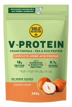 Delikat hasselnötssmak som stärker dina resultat! V-Protein Hasselnöt levererar 19 g komplett växtprotein per shake (24 g pulver) med minimalt med socker (0,1 g) och kolhydrater (0,7 g). Bromelain underlättar matsmältning av proteiner och kombucha probiotika stödjer tarmfloran för maximalt upptag. Veganvänlig och skonsam mot magen, perfekt för att bibehålla muskelmassa. En lyxig men näringsrik shake för träning och vardag. Innehåller sötningsmedel