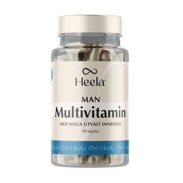 Heela Multivitamin Man är en heltäckande multivitamin med 21 aktiva ingredienser, särskilt sammansatt av Heelas svenska team för att stödja mannens behov. Varje kapsel innehåller en välbalanserad blandning av vitaminer, mineraler och spårämnen – utformad för att ge energi, motståndskraft och långsiktigt välmående.