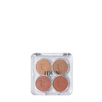 "(Shimmery Rose Champagne) Ingredients: Mica, Synthetic Fluorphlogopite, Triisostearin, Diisostearyl Malate, Magnesium Stearate, Octyldodecyl Stearoyl Stearate, Glyceryl Caprylate, Silica, Tin Oxide, Glyceryl Undecylenate, May Contain (+/-): C.I. 77891 (Titanium Dioxide), C.I. 77491 (Iron Oxides), C.I. 77492 (Iron Oxides), C.I. 77499 (Iron Oxides).(Matte Neutral Taupe) Ingredients: Synthetic Fluorphlogopite, Kaolin, Cellulose, C13-15 Alkane, Glyceryl Caprylate, Polyglyceryl-2 Tetraisostearate, Caprylyl Glycol, Aluminum Hydroxide, Dimethicone/Vinyl Dimethicone Crosspolymer, Glyceryl Undecylenate, Tocopheryl Acetate, May Contain (+/-): C.I. 77891 (Titanium Dioxide), C.I. 77492 (Iron Oxides), C.I. 77499 (Iron Oxides), C.I. 77491 (Iron Oxides), C.I. 77742 (Manganese Violet).(Shimmery Rose Gold) Ingredients: Mica, Synthetic Fluorphlogopite, Triisostearin, Diisostearyl Malate, Magnesium Stearate, Octyldodecyl Stearoyl Stearate, Glyceryl Caprylate, Silica, Tin Oxide, Glyceryl Undecylenate, May Contain (+/-): C.I. 77891 (Titanium Dioxide), C.I. 77491 (Iron Oxides), C.I. 77492 (Iron Oxides), C.I. 77499 (Iron Oxides).(Deep Rose Brown) Ingredients: Synthetic Fluorphlogopite, Kaolin, Cellulose, C13-15 Alkane, Glyceryl Caprylate, Polyglyceryl-2 Tetraisostearate, Caprylyl Glycol, Aluminum Hydroxide, Dimethicone/Vinyl Dimethicone Crosspolymer, Glyceryl Undecylenate, Tocopheryl Acetate, May Contain (+/-): C.I. 77891 (Titanium Dioxide), C.I. 77492 (Iron Oxides), C.I. 77499 (Iron Oxides), C.I. 77491 (Iron Oxides), C.I. 77742 (Manganese Violet).Please be aware that ingredient lists may change or vary from time to time. To confirm that an IDUN Minerals product is suitable for you, please check the ingredients list on the product packaging"