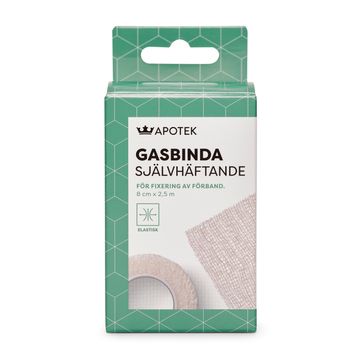 Den elastiska, självhäftande gasbindan är ett praktiskt och pålitligt alternativ för fixering av förband och bandagering. Den följer hudens rörelser och håller förbandet stadigt på plats utan extra tejp eller klämmor. Den latexfri designen gör gasbindan säker för personer med latexallergi och skonsam mot huden.Gasbindan kan enkelt klippas till önskad längd, vilket gör den flexibel för olika behov och sårstorlekar. Perfekt för både hemmet och professionell vård. Mått: 8 cm x 2,5 m (vit).