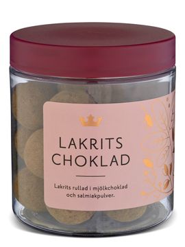 Kundernas mest uppskattade smak. Kronans Apoteks mjuka lakrits, dragerad med lyxig belgisk choklad och lakritspulver. Perfekt smakkombination och underbart god. Finns även i de populära smakerna Hallon och Blåbär. Perfekt som en fin gåva. Produkten innehåller tillsatt socker.