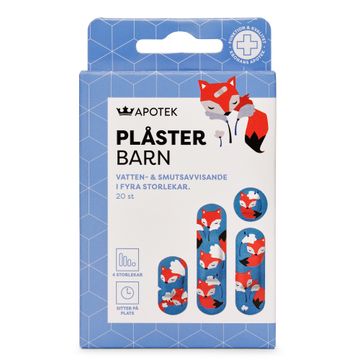 Barnplåster 20 st, 4 storlekar är ett pålitligt och lekvänligt plåsterpaket för små äventyrare. Plåstren sitter kvar under lek och vardagsaktiviteter samtidigt som de låter huden andas. Det vatten- och smutsavvisande materialet skyddar små sår mot smuts och bakterier, vilket gör läkningsprocessen enklare och tryggare.Plåstren finns i fyra olika storlekar, vilket gör det enkelt att hitta rätt plåster för både små och större skrapsår. Latexfri design säkerställer att känslig barnhud inte irriteras. Ett praktiskt och tryggt val för både hemmet och förskolan.
