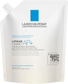 LIPIKAR SYNDET AP+: Lugnande duschgelécreme till kroppen som hjälper till att reducera kliande och irritation orsakad av torrhet, redan i duschen. Mild, skummande och krämig konsistens.