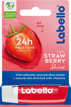 28 krI apotek: 28 kr-Läppbalsam med etiskt framställt Sheasmör -Läcker jordgubbsdoft och härlig rödaktig glans -Naturliga ingredienser och oljor berikade med vitaminer -Ny, förbättrad och mer effektiv formula -Vegansk formula - inga animaliska ingredienser SMAK + ÅTERFUKTNING + EN HINT AV FÄRG i en läppprodukt? JA med Labello® Strawberry Shine Lip Balm! Detta läppcerat har en delikat doft av jordgubbsarom och ger dina läppar en subtil röd glans. Dessutom behåller det läpparna fuktade i 24h samt skyddar mot kyla, vind och torr luft. Kliniskt testad. Den nya förbättrade formulan är berikad med naturliga ingredienser och etiskt framställt sheasmör. Detta läppbalsam innehåller dessutom naturliga oljor och vitaminer. Den unika formulan har en behaglig konsistens som omedelbart smälter in på dina läppar och håller dem återfuktade. Ceratet stöttar läpparnas hudbarriär mot yttre faktorer samt skyddar dem från att torka ut. Vegansk formula ? fri från animaliska ingredienser. Dermatologiskt testad och passar alla hudtyper. Njut av vackra, mjuka och fräscha läppar hela dagen, varje dag!