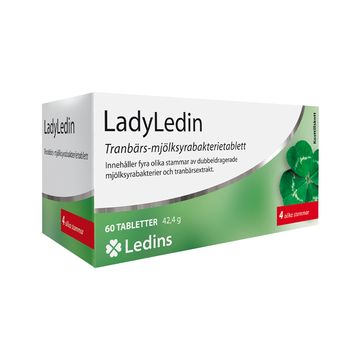 Ladyledin är ett kosttillskott som innehåller en unik kombination av tranbärsextrakt och mjölksyrabakterier. I LadyLedin är mjölksyrabakterierna skyddade med två lager av protein och polysackarider vilket gör att bakterierna överlever den sura miljön i magsäcken.