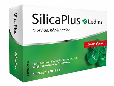 Silica Plus är ett näringstillskott för hår och hud som innehåller biotin, zink, vitamin A, kisel från extrakt av åkerfräken och vitamin B5.