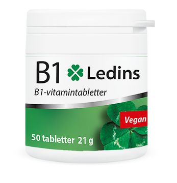 Ledins B1 (Tiamin) är ett kosttillskott som bidrar till normal energiomsättning, till normal hjärtfunktion och till nervsystemets normala funktion.