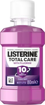 LISTERINE® Total Care-familjen är de mest kompletta LISTERINE® med 10 fördelar i en flaska. Munskölj som motverkar tandsten, reducerar plack, skyddar tandköttet och ger fräsch andedräkt i upp till 12 timmar. LISTERINE® Total Care innehåller fluor som stärker tänderna och skyddar mot hål i tänderna. Använd 2 gånger dagligen efter tandborstning. Från 12 år.