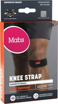 Mabs knästrap ger stöd och avlastning för knäskålssenan vid exempelvis Schlatter- eller hopparknä.