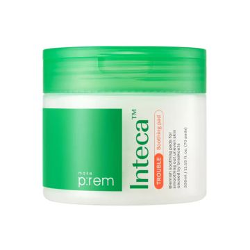 Inteca™ Trouble Soothing Pad är milda, lugnande tonerpads speciellt utvecklade för känslig och oren hud med tendens till pormaskar, tilltäppta porer och ojämn hudstruktur. De extra stora bomullspadsen (80 mm) har en dubbel textur som kombinerar skonsam exfoliering med återfuktande och lugnande effekt. Formulan innehåller ett milt syra-komplex med capryloyl salicylic acid (LHA), gluconolactone (PHA) och pilbarksextrakt som avlägsnar döda hudceller, minskar tilltäpptheter och förbättrar hudens textur. Hudlugnande TECA-komplex från centella asiatica stärker och skyddar känslig hud. Pixalia™ och ferment från rapsolja återställer hudens mikrobiella balans, minskar glans och främjar jämn hudton. Innehåller även allantoin, glycerin och hydroxyethyl urea för återfuktning utan att täppa porerna. Perfekt för daglig användning på känslig och oren hud som behöver mild exfoliering och lugnande vård.