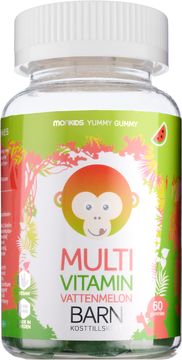 Vill du ge ditt barn ett jämnt intag av viktiga vitaminer? Monkids Multivitamin Barn Vattenmelon är en god och lättuggad gummy med 11 vitaminer – däribland dagsbehovet av D-vitamin och B12. D-vitamin behövs för att barns benstomme ska växa och utvecklas normalt samt bidrar till ett normalt fungerande immunsystem. Gummyn har fin färg från klorofyll, naturlig vattenmelonsmak och tillverkas i Sverige. Från 3 år, fungerar även för vuxna.
