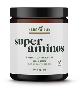Närokällan Super Aminos innehåller åtta essentiella aminosyror som kroppen inte kan tillverka själv.