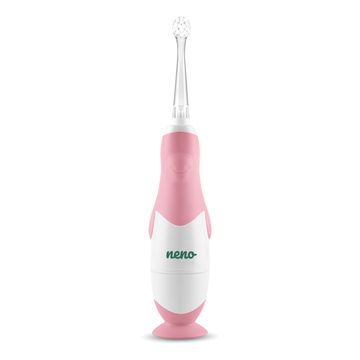 249 krI apotek: 249 krDenti är en elektrisk tandborste för skonsam och effektiv rengöring av barns tänder. Den har ett extra mjukt borsthuvud som är snällt mot de allra minstas tänder och tandkött. Tandborsten kommer också med tre huvuden för rengöring av tandkött och resten av munhålan. Perfekt för att hålla god munhygien även innan de första tänderna har brutit fram. Denti är utformad som en pingvin för att göra borstningen rolig och lekful. Den har också en praktisk sugkopp nertill för att kunna ställas upprätt när den inte används. Tandborsten har inbyggd belysning för att enklare kunna se i barnets mun och ha koll på tänder och tandkött. Den drivs av ett AAA-batteri och är helt vattentät, klass IPX7. Denti lämpar sig för användning från tre månader och precis som alla Nenos produkter är den helt fri från BPA.