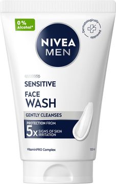 NIVEA MEN Sensitive Ansiktsrengöring är en skonsam och lugnande rengöring som är speciellt framtagen för känslig hud. Med sin milda formula, berikad med lugnande ingredienser, rengör den huden noggrant utan att orsaka irritation. Den tar effektivt bort orenheter och överflödig olja, vilket lämnar huden fräsch och revitaliserad. Denna ansiktsrengöring ger omedelbar lindring av irritation och säkerställer daglig hudkomfort, vilket gör den idealisk för män som har känslig hud. Den passar utmärkt för daglig användning och är ett perfekt alternativ för dig som söker en effektiv och lugnande rengöring att inkludera i din hudvårdsrutin.