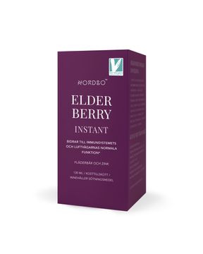 NORDBO Elderberry Instant är framtagen för immunsystemets funktion och innehåller ett flytande koncentrat av svarta fläderbär och zinkglukonat. Fläderbär och zink bidrar till att bibehålla immunsystemets normala funktion. Fläderbär bidrar till att bibehålla luftvägarnas normala funktion.Elderberry Instant rekommenderas vid behov för att förebygga eller förkorta förkylning. Tas med fördel inför förkylningssäsongen.Svarta fläderbär (Sambucus nigra) har en lång tradition inom folkmedicin och är rika på antioxidanter. Studier har visat att svarta fläderbär har antibakteriella egenskaper. Elderberry Instant innehåller europeiska fläderbär.Koncentratet har en god bärsmak. Utan tillsatt socker, endast sötad med naturlig xylitol. Elderberry Instant är veganskt certifierad av Djurens Rätt.Flaskan består av glas. Glas kan återvinnas oändligt och ger ett fullständigt skydd mot fukt och luft. Ytterförpackningen består av FSC-certifierad, återvunnet papper.Produkten är utvecklad i Sverige av NORDBO - ett familjeägt varumärke från Malmö, som tar fram kosttillskott utifrån innovation, dokumentation och hållbarhet. Innehåller sötningsmedel