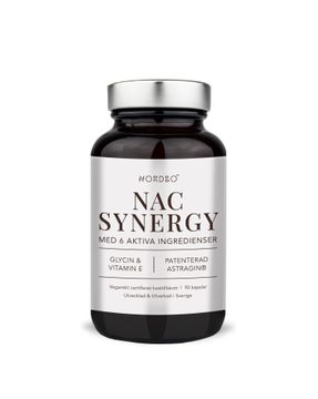 NORDBO NAC Synergy är ett synergistiskt komplex med NAC, vitamin E, vitamin C, glycin och selen.