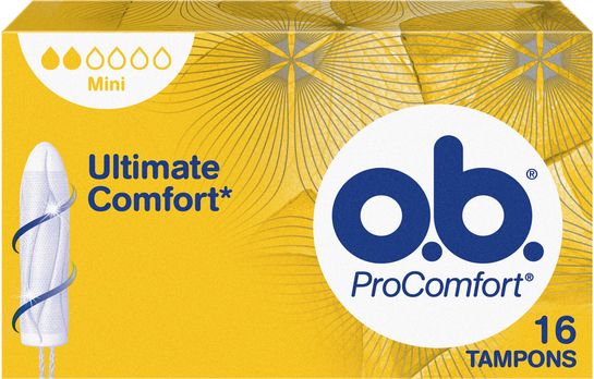 o.b.® ProComfort™ Mini är lätt att föra in och ger ett säkert skydd tack vare det lena SilkTouch™-höljet och de unikt slutna kanalerna. Tampongen är liten och smal med en avsmalnande topp som gör att den är lätt att få på plats Upp till 100% skydd från läckage och säkert skydd i 4-8 timmar. o.b.® ProComfort™ vår mest bekväma tampong, i o.b.® sortimentet, för pålitligt skydd, så att du kan fokusera på att göra det du vill. Passar bra för dig som använder tampong för första gången, eller som har lite mens.