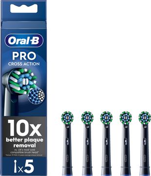Oral-B Pro Cross Action-borsthuvudet har mer än 2 200 perfekt vinklade borststrån för att avlägsna upp till 100 % mer bakteriell plack för renare tänder och hälsosammare tandkött jämfört med en manuell tandborste. Oral-B borsthuvuden är utformade med nya X-formade borststrån som rengör i områden där rundade borststrån inte når. Indikatorn för användning av borsthuvudet gör att borststråna ändrar färg från grönt till gult för att visa när det är dags att byta borsthuvud för 100 % rengöringseffekt. Garanterad passform med Oral-B laddningsbara eltandborstar förutom Pulsonic- och iO-tandborstar.