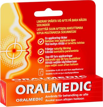 En applicering av Oralmedic hjälper till att snabbt lindra smärtan och obehaget av en munblåsa. Det fungerar genom att bilda en skyddande barriär över såret och att skapa optimala förhållanden för naturlig läkning.